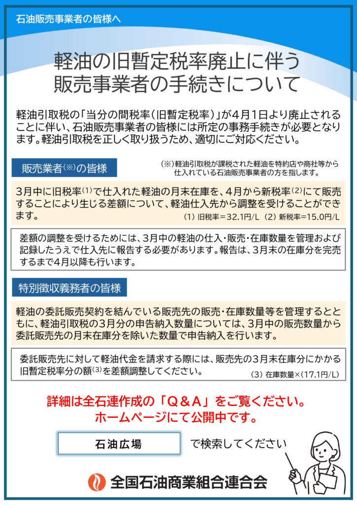 軽油引取税の当分の間税率(旧暫定税率)廃止に伴い必要となる事務手続きについて